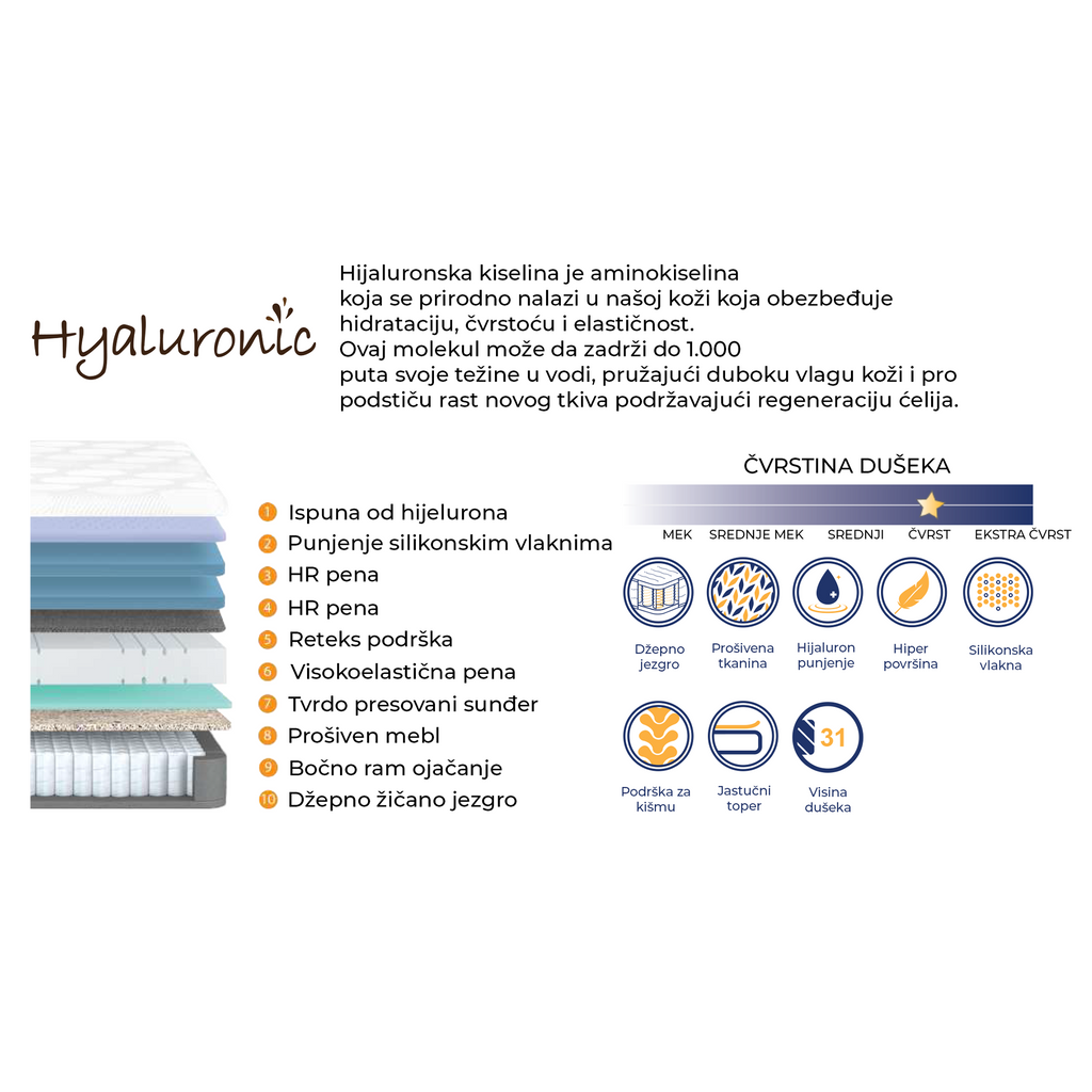 Namenjen korisnicima koji traže stabilnu podršku i uravnoteženu konstrukciju dušeka tokom sna.